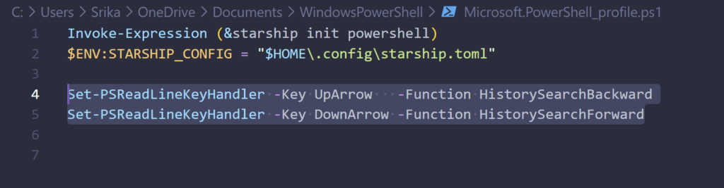 Set-PSReadLineKeyHandler -Key DownArrow -Function HistorySearchForward